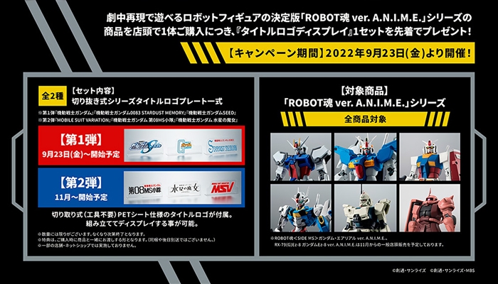 Questa campagna è applicabile per tutti i prodotti della serie A.N.I.M.E. di spiriti ROBOT, e un titolo logo display sarà offerto per ogni ver. prodotto Serie A.N.I.M.E. acquistato presso i negozi su una base di primo arrivato, primo servito.