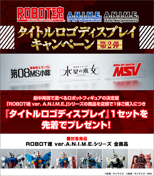 Questa campagna è applicabile per tutti i prodotti della serie A.N.I.M.E. di spiriti ROBOT, e un titolo logo display sarà offerto per ogni ver. prodotto Serie A.N.I.M.E. acquistato presso i negozi su una base di primo arrivato, primo servito.