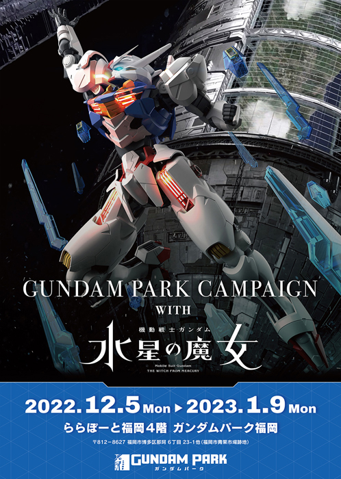 La campagna Event GUNDAM PARK conMobile Suit Gundam la strega di mercurioè a partire dal lunedì 5 dicembre, presso il General Gundam Entertainment Facility Gundam Park Fukuoka.