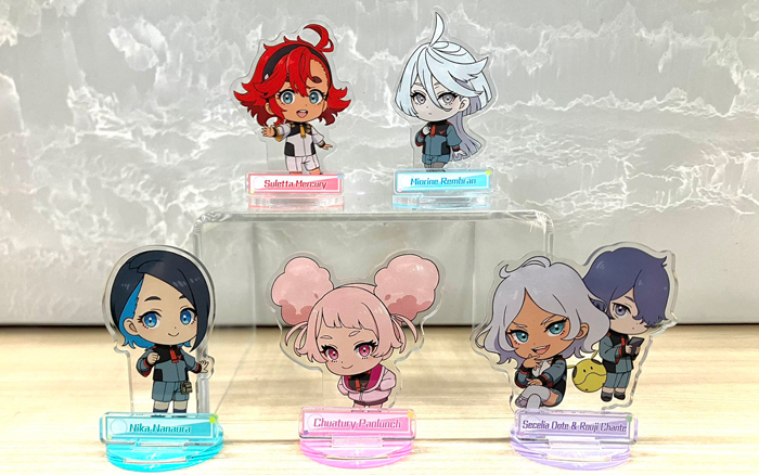 Questi oggetti sono supporti acrilici con illustrazioni delMobile Suit Gundam la strega di mercurioMascotte in gomma capsula che è andato in vendita nella 5a settimana di ottobre.