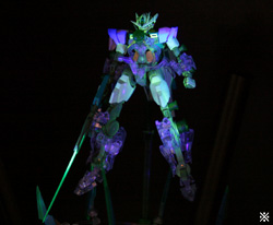 The Robot Damashii Side MS 00 Qan[T] (Quantum Burst ver.) is now available on Premium Bandai in both standalone and blacklight stand set packages! The standalone version retails for 4,725 yen, while the set including the blacklight stand retails for 7,350 yen. Both are expected to ship in September.