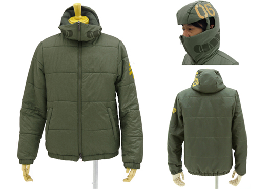 The character apparel and goods brand Cospa will release a 'Zaku Cotton-filled Jacket', with mono-eye style hood, in mid-December. MSRP is ¥11,550.