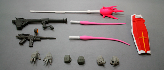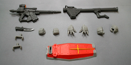 Each Guncannon includes a shield, beam rifle, hyper bazooka, combat knife, and six replaceable manipulators just like the Gundam.