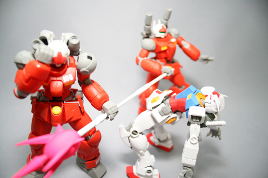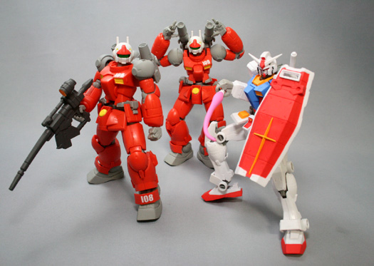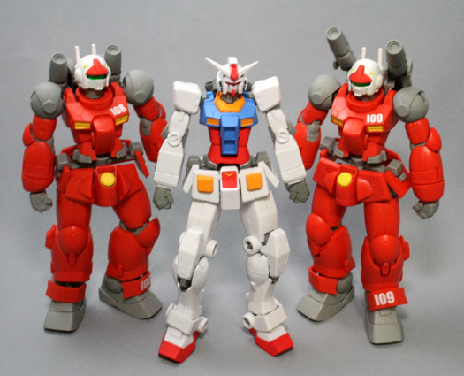 A total of three figures, the Gundam plus Kai Shiden and Hayato Kobayashi's Guncannons!