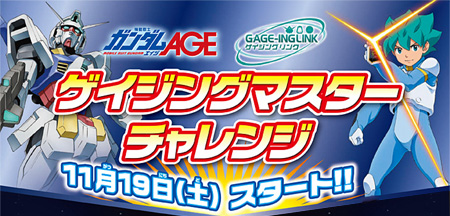 The new Gundam hobby Gage-ing will implement Gage-ing Battle Master Challenge, in which players can save up points for special items, on machines nationwide.