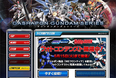 コンテストは、ガシャポン商品「MSフロンティア」を使用して撮影した写真を公式サイトから投稿するというもので、「カラーリング部門」、「CG部門」、「アレンジ部門」の3つの部門が設けられている。