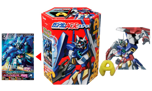 スナックは、「ガンダムAGE-1」や「AGE-2」、「AGE-3」の胸部エンブレムの形をコーンパフで再現する。味は、肉と野菜の旨味をベースに、隠し味にカレーの味付けを加えたバーベキュー味で、大人も子供も楽しめる味わいとなっている。