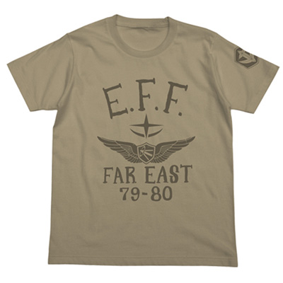 「極東方面軍Tシャツ」は、パイロット徽章や一年戦争の年号をモチーフとした手書き風のデザインに仕上がっている。