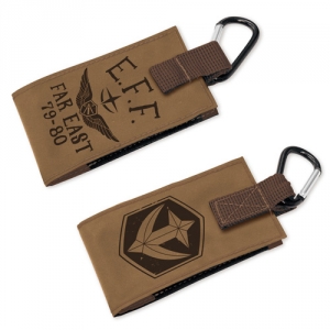 「極東方面軍モバイルポーチ」は、パイロット徽章や一年戦争の年号とヴィンテージ感漂う連邦宇宙軍マークがそれぞれプリントされた、リアリティを感じさせるアイテムとなっている。