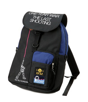 ラストシューティングのプリントや、レザーパッチ、地球連邦宇宙軍「E.F.S.F.」の刺繍ワッペン、機体をイメージしたカラーリングなど、ファンにはたまらないポイントを満載したデザインで、収納力はもちろん、多機能搭載のフロント&インナーポケットなど、バッグとしての使い勝手も抜群の一品となっている。