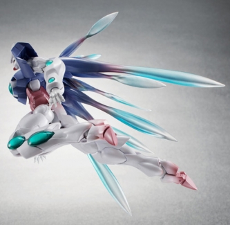 The ELS QAN[T] was piloted back to Earth by Setsuna F Seiei after his 50-year conversation with the alien lifeform ELS. Its unique back tendrils are modeled in translucent plastic with a gradient, and it includes three types of ELS from the film.