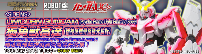Tamashii Web Shop – PREMIUM BANDAI Hong Kong SHOP ROBOT TAMASHII UNICORN GUNDAM (Psycho Frame Light Emitting Spec) By using OMS (overmask spray) to reappear UNICORN GUNDAM Psycho Frame's scene as the animation!. The main body uses the ROBOT TAMASHII GUNDAM (Destroy Mode) Full Action ver. |