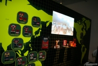 ▲ This exhibition blends figures, displays, and surfaces. Simply move the figures close together on the surface, and watch their battle unfold on the monitor above!