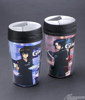 Two designs by Mobile Suit Gundam SEED animation director Kohei Yoneyama are available, depicting either Kira Yamato or Athrun Zala in Gundam Café staff uniform and hard at work.