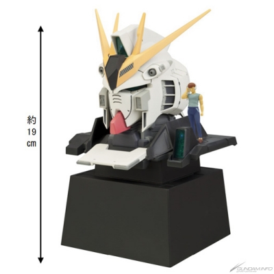 A model of the νGundam's head. Amuro provides a sense of scale.