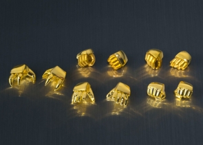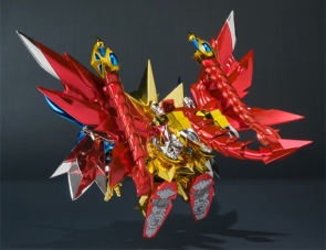 特徴的なカラーは「金」、「銀」、「赤」、「青」の4色のメッキで豪華に再現。軟質パーツの露出を極力抑え、メッキ装甲を見せるパーツ構成が採用されている。
