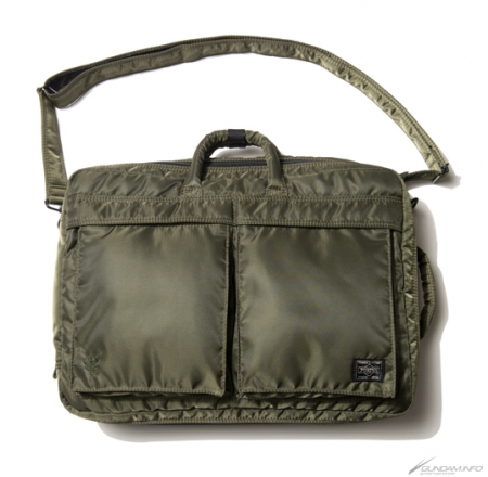 軽量且つ丈夫で、ブリーフケース、ショルダー、リュックと様々なシーンで活躍する3ウェイブリーフケース。リュックのストラップは背面に収納でき、ショル ダーストラップによる肩掛けも可能。「ザクII」をイメージした深みのあるカーキと、ジオン公国軍のエンブレムが主張をしすぎる事なく、さりげなく世界観 をアピールしている。