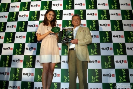 商品紹介の後は、これまでの発表会でもおなじみ、シャア・アズナブル役の声優・池田秀一氏と、女優・モデルなど多方面で活躍中の加藤夏希さんがスペシャルゲストとして登場。