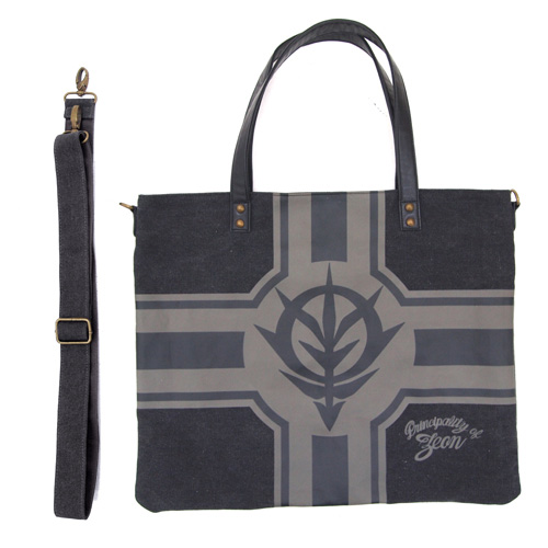 ジオン公国軍旗がデザインされた「ミリタリーショルダーバッグ」と「ミリタリートートバッグ」は、ヘビーオンスの頑丈なキャンバス生地にウォッシュ加工を施して独特な風合いを演出、中生地にジオン軍旗をイメージしたバーガンディの生地をアクセントとして使用したアイテム。