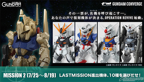 ガンダム食玩の公式サイト「ガンダム食玩ポータル」では、「FW GUNDAM CONVERGE」シリーズの復刻機体を決める人気投票「FW GUNDAM CONVERGE OPERATION REVIVE」を開催しており、その第2次投票となる「MISSION 2」が本日7月25日(木)よりスタートした。