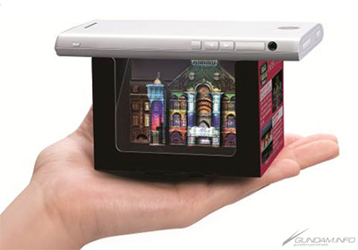 開封したパッケージにフィギュアとクリアプレートをセットして、パッケージ記載の二次元バーコードをスマートフォンで読み取ることで再生される専用映像をフィギュアに向けて下方向にセットするだけで、様々な立体映像を擬似的に体感することができる。
