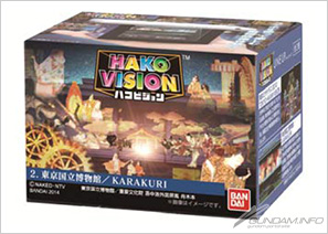 「ハコビジョン」は、バンダイが独自に開発した「ハコビジョン技術」(日本特許出願中)によって、約8.5センチメートル四方の箱の中で、映像とフィギュアが織り成す美麗な映像の世界観を再現するアイテム。