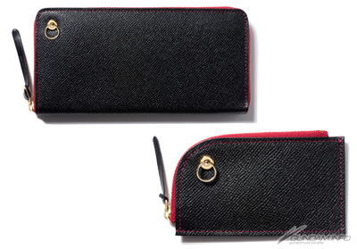 どちらも『赤い彗星』の異名を持つ「シャア・アズナブル」をイメージしたデザインとなっており、黒×赤の配色にゴールドのファスナー、内装にはシャアのパーソナルマーク入りピスネームを纏う。カウレザー(牛革)にシボの型押しを施した張りのある質感は、繊細な高級感を演出し、且つ傷が目立ちにくいのが特徴。
