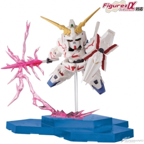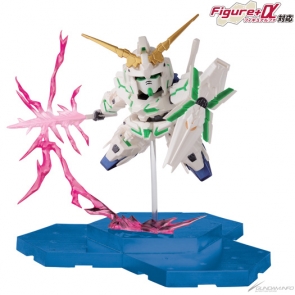 An SD figure of the Unicorn Gundam Destroy Mode from Mobile Suit Gundam UC. It's built in a G Generation action pose with added effects. |
