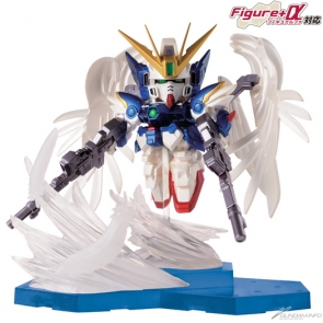 An SD figure of the Wing Gundam Zero (EW) from New Mobile Report Gundam Wing. It poses with all the harsh glory of an angel, in an effect-added version of its in-game depiction. |