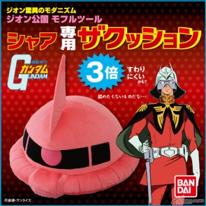 話題の「量産型ザクッション」に続いて「シャア専用ザクッション」が新たに登場。モフモフのクッションは直径約40cmのビックサイズで、抱き心地バッチリの大きさとなっている。