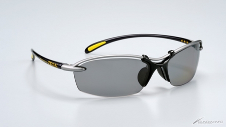 今回発売される「AIRLESS WAVE BLACK TRI STAR Ver.」は、ドムを彷彿とさせるダークパープルなボディと、フレームの内側にデザインされた三連星が大人の男心をくすぐる。レンズにはさりげなくジオン公国軍マークが入り、配色だけでなく細部へのこだわりも感じられるアイテムとなっている。