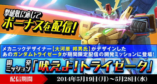 From May 30th through June 8th, an MS experience bonus based on the total nationwide "Gundam Tri-Zeta" killcount will be awarded.