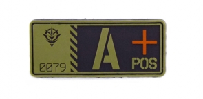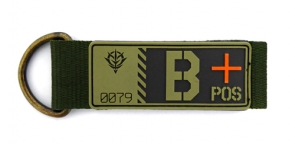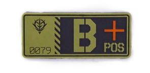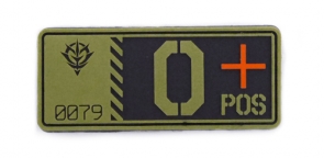 兵士たちが輸血を必要とするような怪我をした時に、スムーズな処置を受けて生存率を高めるよう使用されている血液型パッチ。ミリタリーの世界で定番になりつつあるこの血液型パッチをモチーフにした本アイテムは、ジオンのマークと一年戦争の年号がデザインとして取り入れられている。