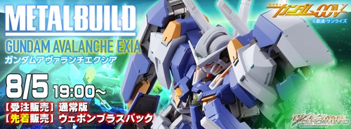 Orders from the official Bandai shopping site Premium Bandai for the "Metal Build Gundam Avalance Exia" and its "Weapon Plus Pack" will open at 7 PM on August 5th.