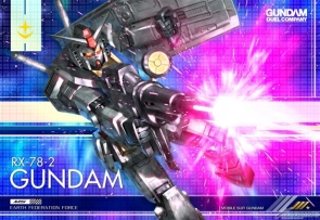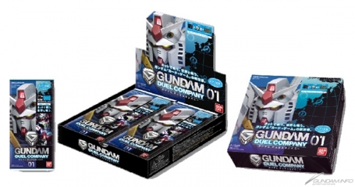 第1弾パック「ガンダムデュエルカンパニー01」では、10を超えるガンダム作品よりモビルスーツとパイロットが一挙参戦する。さらに、オープンβ版では未登場だった超強力カード「レア5」や「レア6」を含む全103種類のカードが収録される。