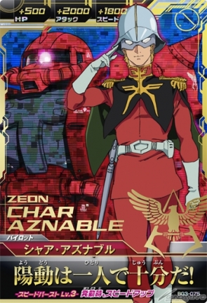 毎弾好評のシークレットカードとして、『ガンダムビルドファイターズ』より「ガンダムアメイジングエクシア」と、『機動戦士ガンダム THE ORIGIN』より「シャア・アズナブル」が参戦する。ぜひとも手に入れて、その性能を自分の目で確かめよう。