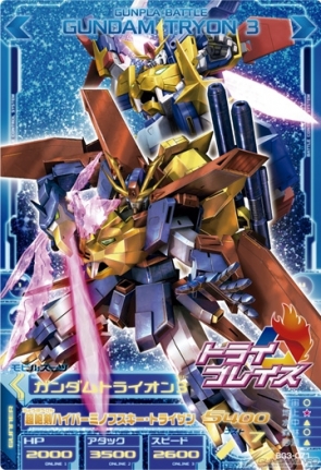 新アビリティ「トライブレイズ」を持つキャンペーンカード「ガンダムトライオン3」のカードイラストが公開され、さらに同ガンプラを操る「サカイ・ミナト」がマスターレアカードとして収録されることが明らかにされた。