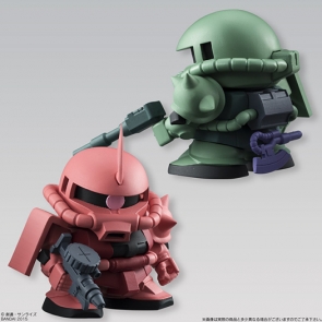 The second set includes the Char's Zaku, Zaku, Gouf, Dom, and Magella Attack & Zeon Weapons Set from Mobile Suit Gundam. The Magella Attack can be used as a weapon by the Zaku, and the tank portion can also combine with Zaku parts.