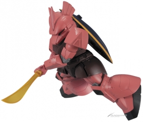 The new series includes Mobile Suit Gundam's Char's Gelgoog, Gyan, Z'Gok, and Zock. Each includes a stand allowing it to strike an active pose, with the Gyan including a Ball and the Z'Gok including a Sea Lance as props.