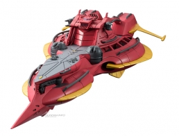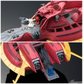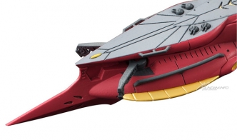 Measuring 170mm from bow to stern, and equipped with three rotating turrets, the model also features the ship's port and starboard anchor cranes. Fore and aft hangar hatches can be opened or closed with parts swaps, and the G-Self and five other mini-mobile suits are included for hangar or deck display.