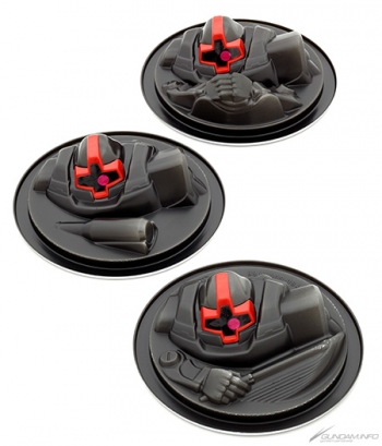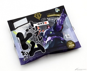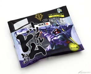 ジオン公国軍の重モビルスーツ「ドム」をかたどった「トリプル・ドムとうふ」は、パイロットであるガイア、マッシュ、オルテガの攻撃「ジェット・ストリーム・アタック」をモチーフにした3種のパッケージで展開。「マイルド」、「ビター」、「ミルク」と、それぞれ異なる3種類のチョコレート味の豆腐が充填される。