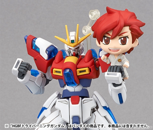 The first set is a lineup of SD Gundam Build Fighters Try characters. Each of the five varieties includes not just a stand, but also an arm. The arms can be used for display with HGBF kits. Combining them with kits makes them even more GBF-perfect!