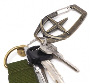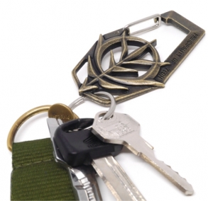 各軍のマークが鈍く光るレリーフカラビナが登場。金属製の本体をアンティーク加工した重厚な仕上がりで、毎日使うカギ類や小物、ミニツール、ストラップなど、色々なモノを取り付けることができる。バッグなどに取り付けて、アクセサリーとして楽しむのもオススメ。