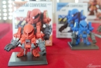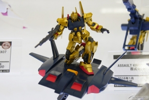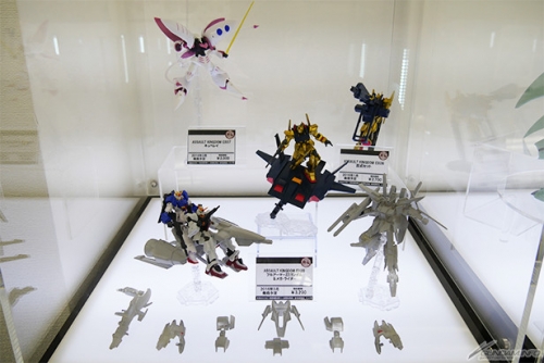 Samples of the FW Gundam Converge Neue Ziel, Gundam Astray Red Frame, and Gundam Astray Blue Frame were on display, along with final versions of the Assault Kingdom EX09 Full Armor ZZ Gundam & Mega Rider due next march and the Assault Kingdown Queen Mansa currently available on Premium Bandai.
