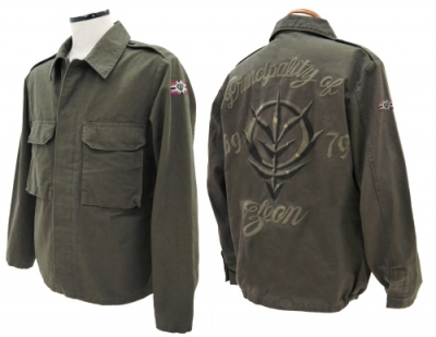 This jacket is made of heavy "moleskin" fabric that's been a staple of military uniforms for decades. Enjoy the genuine feel and look of its specially-woven, replica-style cloth, and the premium embroidered design on the back.. Each sleeve also features a military-style Zeon ensign.