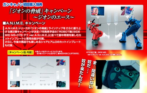 Special cutin plates to dramatize its battle with the Robot Spirits Gouf Ver. A.N.I.M.E., launching this July, are also included with the first shipment.