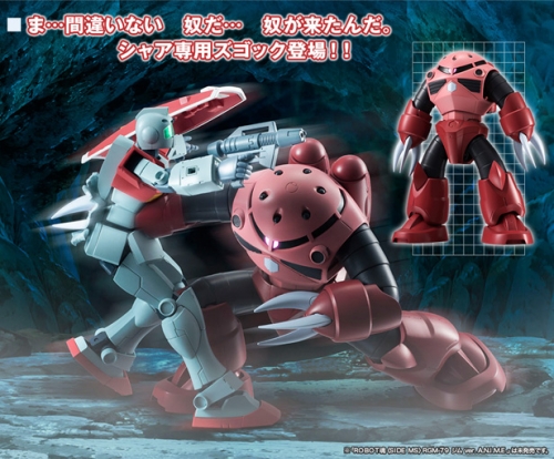 最新弾となる「ズゴック」は、肘・膝関節の圧倒的な可動力が実現され、前腕部の回転軸により爪の向きを変えることができる。腹部には腰椎をイメージさせる可動軸が、股関節部には形状と可動を両立する新機構が採用されているほか、胸部には腕の一部が内蔵され、引き出すことで劇中同様の躍動感を演出できる。