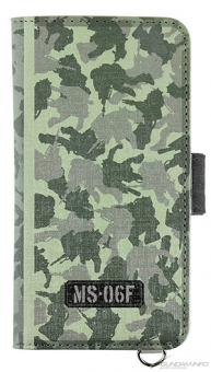 「機動戦士ガンダム 汎用フリップケース(リデザイン)」は、5インチまでの様々なスマートフォンに対応可能なユニバーサル・フリップカバー。スマートフォンをスライドさせることでカメラ撮影も可能で、便利なカードポケットも付いている。デザインは、ガンダムやザク、ジオンマークなど全6種。