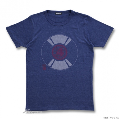 The Io record print tee redesigns Side 4’s symbol as a record. The trumpet print tee is a jazzy design adding a trumpet and radio to the series title. The FA-78 pocket tee combines the Full Armor Gundam with a speaker grille design. And the MS-06R tee combines the Psyco Zaku with a volume gauge.