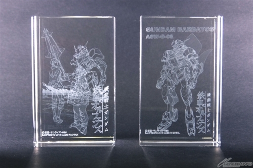 本アイテムは、『機動戦士ガンダム 鉄血のオルフェンズ』第1期のキービジュアルイメージとガンダム・バルバトスの2種類が、クリスタルガラスにレーザー加工されたもの。